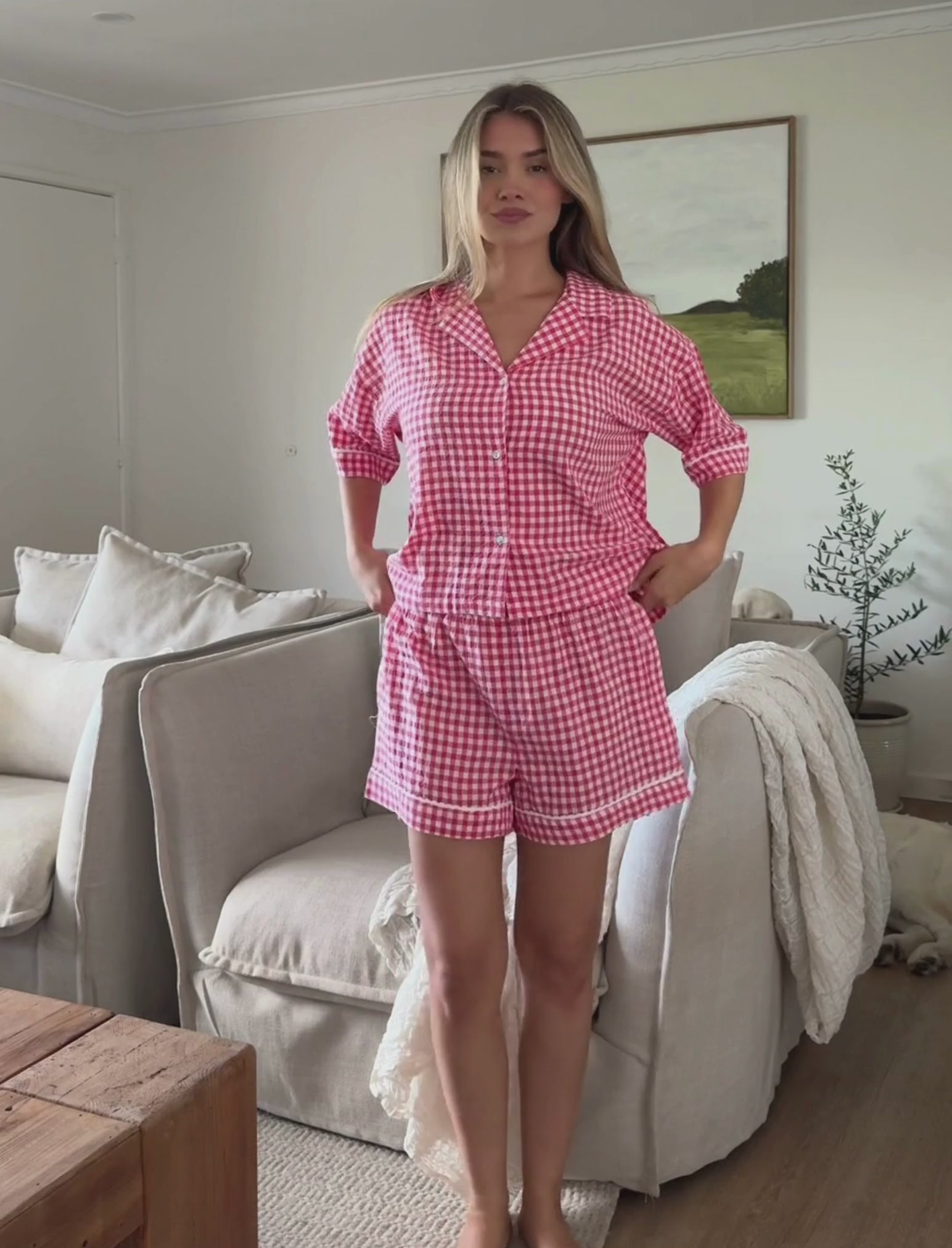 Add a touch of timeless charm to your loungewear with the Seersucker Gingham Boxer PJ. Crafted from a soft blend of cotton and Lenzing Ecovero viscose, this set combines lightness and breathability for ultimate comfort. The classic gingham pattern paired with a textured seersucker is perfect for lounging or a restful night’s sleep.